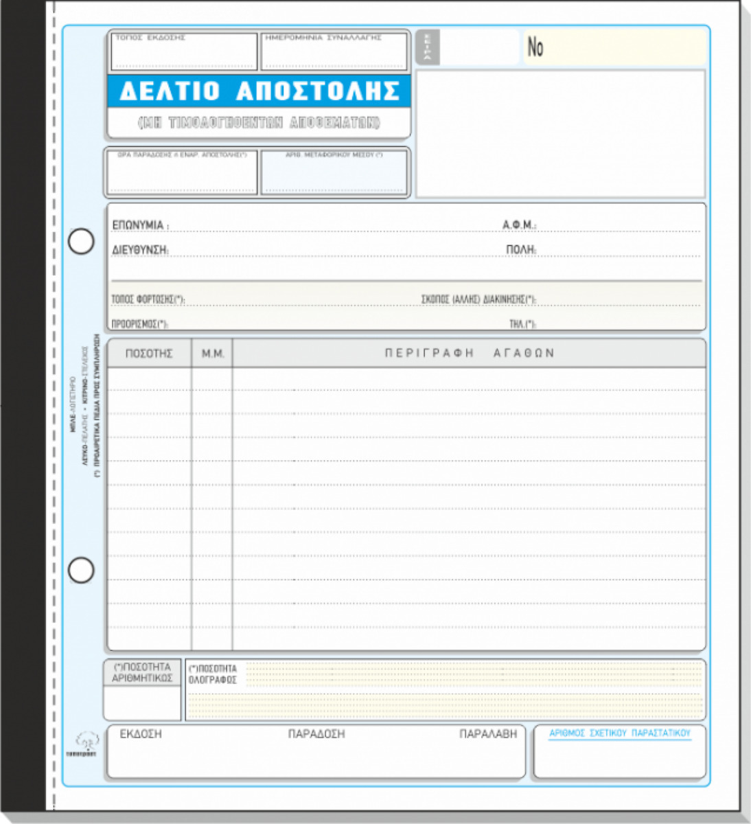 - Αντίγραφα: 2 (Λευκό - Κίτρινο)